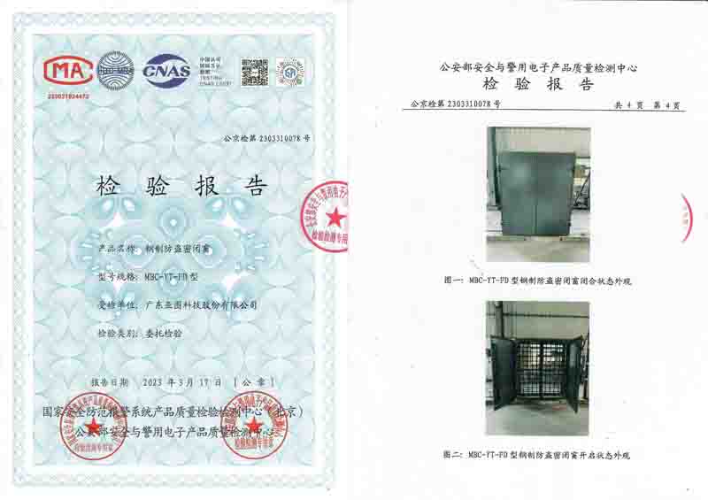 鋼質(zhì)防盜密閉窗公安部檢測資質(zhì)報告