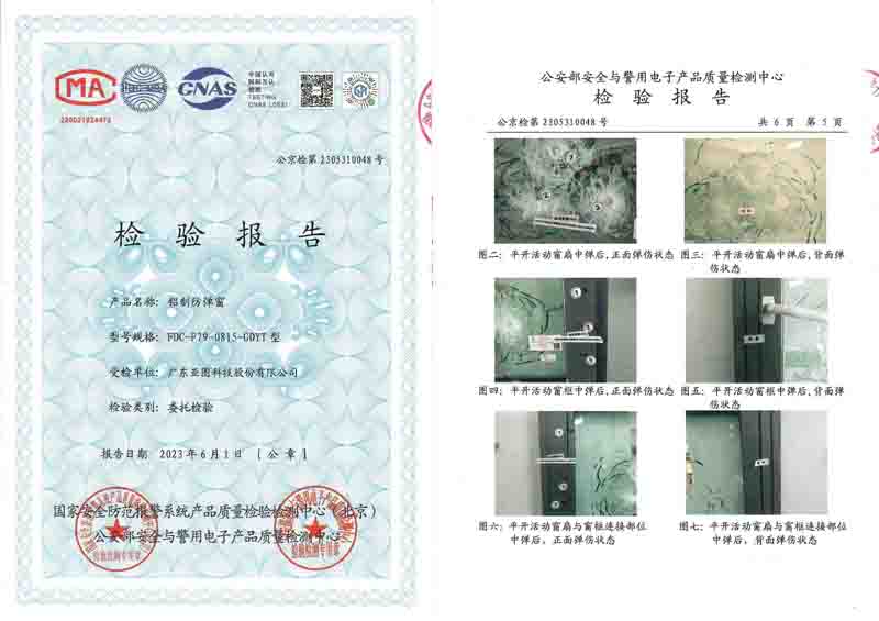 鋁制防彈窗公安部檢測(cè)資質(zhì)報(bào)告
